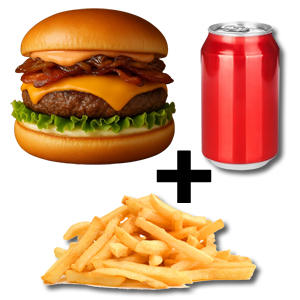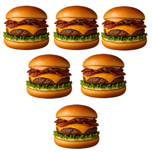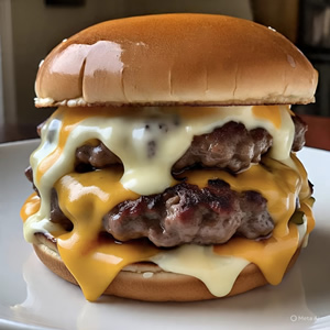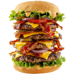 Pão especial brioche tostado na manteiga, 360 gramas de carne 100% bovina divido em 2 carnes de 180g, 2 fatias de queijo cheddar, 2 fatias de queijo artesanal, molho premium Baconese ou Alhonese (você tem que escolher).